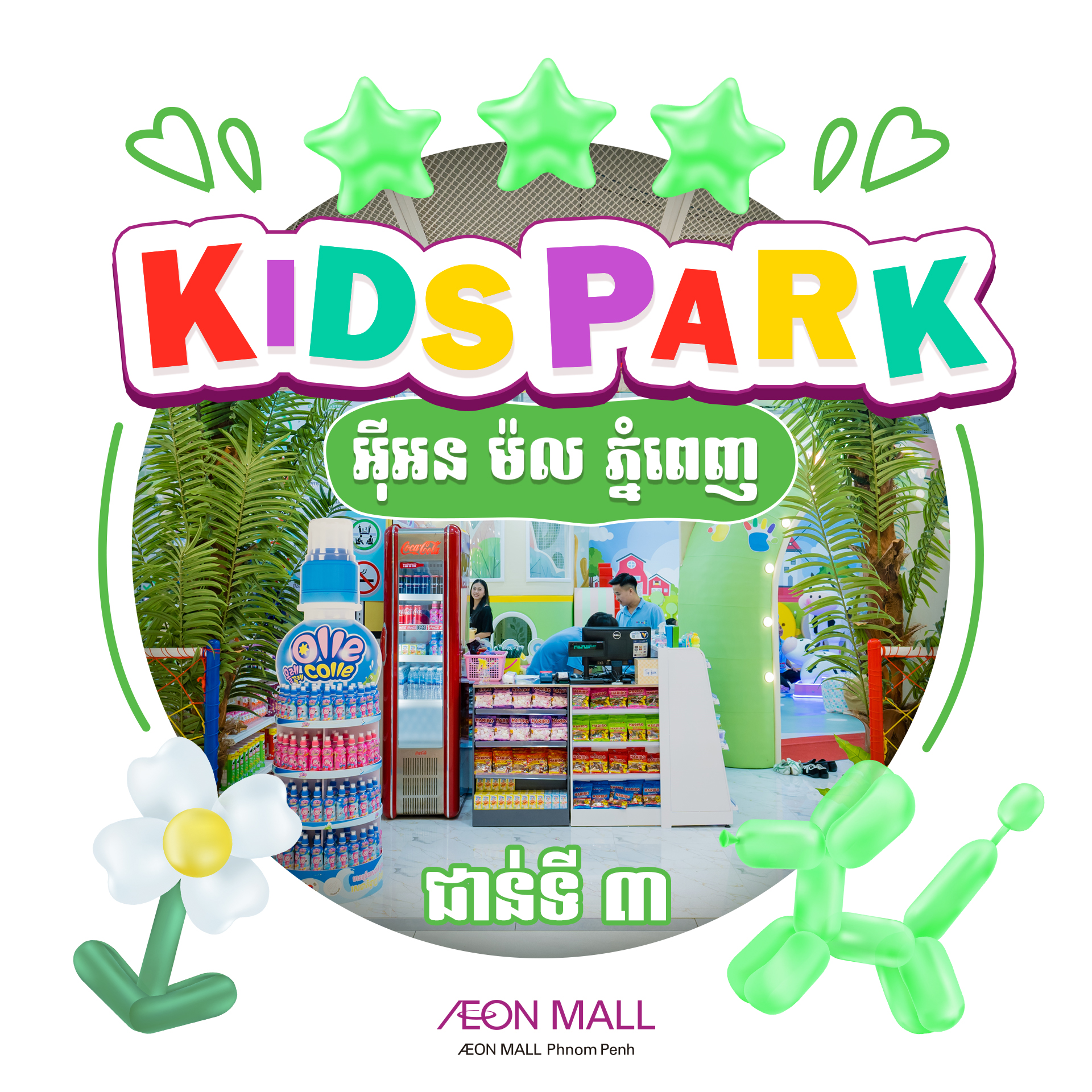 No idea where to take your little ones to play? 🧐🛝 Bring them to the Playground at Kids Park on the 3rd floor of AEON Mall Phnom Penh! ✨All the toys, play balls, and equipment are clean, hygienic, and meet safety standards perfect for your kids to enjoy safely.